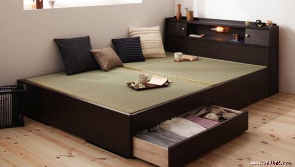 Nhiều gia đình Nhật hiện nay vẫn còn ngủ trên những chiếc đệm trải trên sàn nhà kiểu truyền thống, nhưng đã có nhiều gia đình nâng sàn gỗ đặt một chiếc giường lên để tận dụng không gian. Dưới gầm giường ngủ, mọi người có thể kê một hoặc hai chiếc hộp nhỏ để chứa đồ.