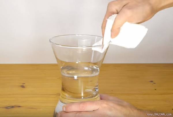 Tiếp theo, dán băng dính tạo thành một tấm lưới trên miệng bình với khoảng cách để các mắt lưới đều nhau. Dùng dao hoặc kéo sắc cắt đứt băng dính để phần mép dứt khoát, ngay ngắn. Sau đó, dán một lượt băng dính vòng quanh miệng bình, đè lên các mối băng dính vừa dán.
